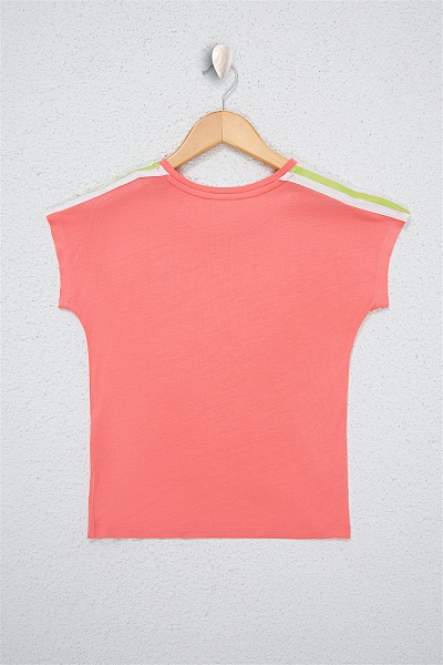 Футболка-поло из хлопка c принтом на планке для девочек