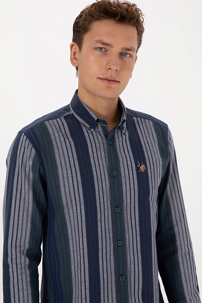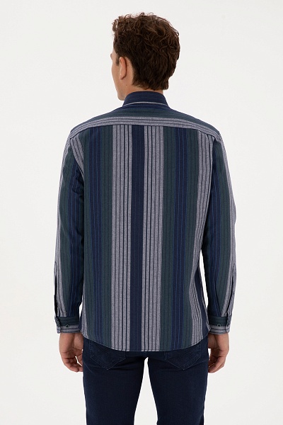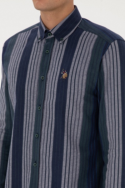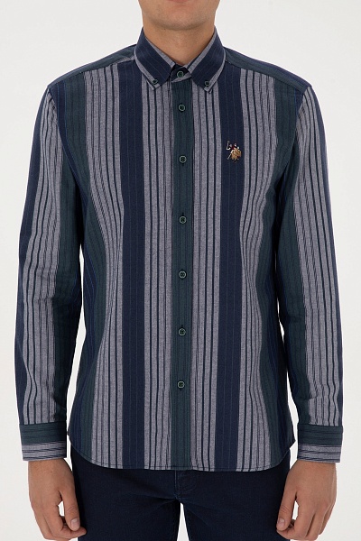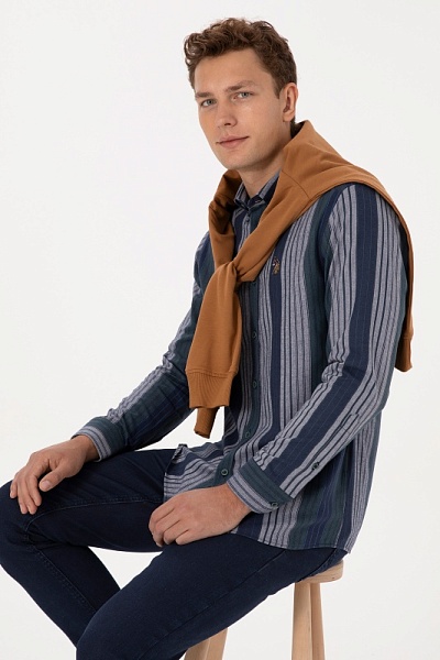 Рубашка с хлопком в полоску приталенная