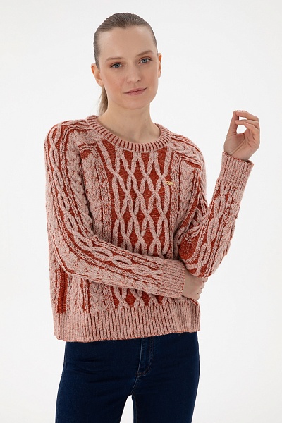 Джемпер с узором косичка приталенный