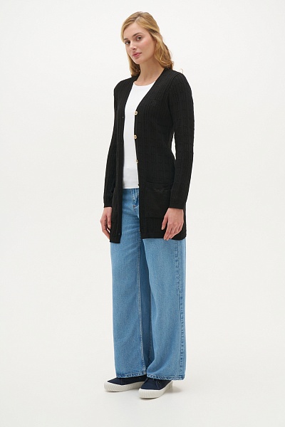 Кардиган с узором косичка удлиненный