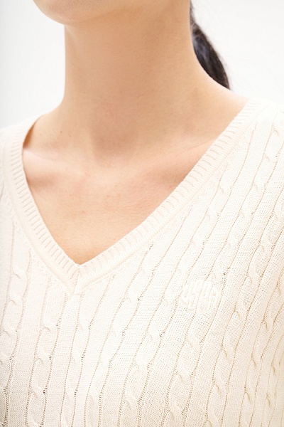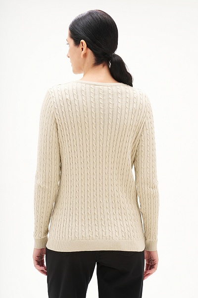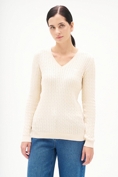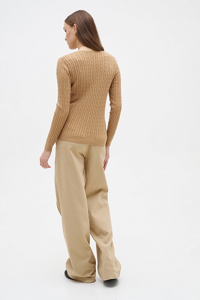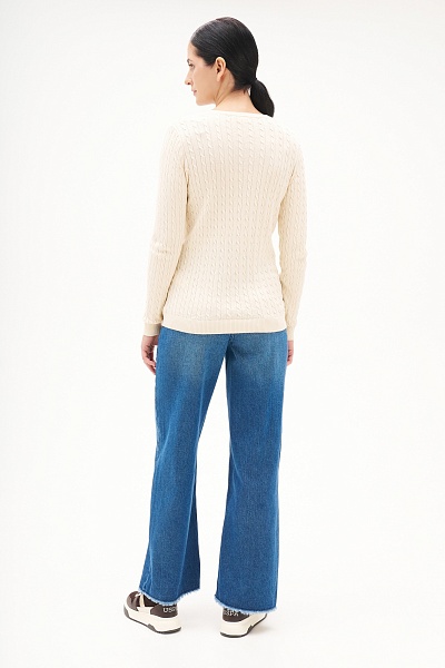 Пуловер с узором косичка приталенный